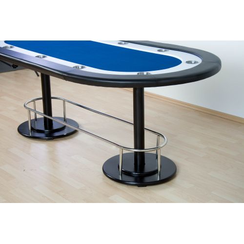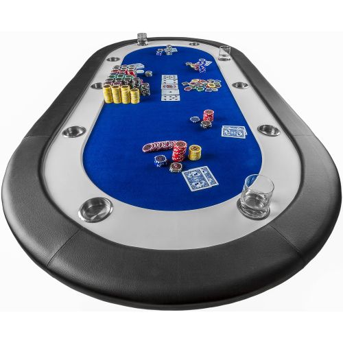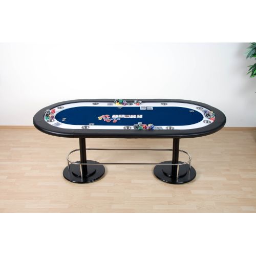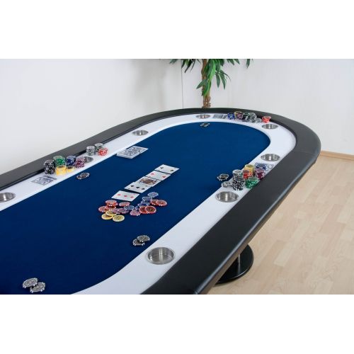 Pokerový stůl "FULL HOUSE" je velmi kvalitní stůl až pro 10 hráčů. Ať už hrajete Draw Poker, Stud nebo oblíbený Texas Hold, u tohoto stolu se budete vždy bavit. Deska stolu je vyrobena z 18 mm silného MDF. Stůl má 2 ocelové nohy s talířovitým zakončením, které zajišťuje dobrou stabilitu. Plátno stolu je v klasické modré a je vyrobeno z kvalitního plstěného materiálu, který se netřepí. A aby byl i ten nejdelší pokerový večer od začátku až do konce zážitkem, je stůl vybaven extra silným polstrováním pro vaše paže, opěrkami pro nohy a deseti držáky nápojů. Vnitřní ovál nabízí dostatek prostoru pro odložení žetonů. Díky podrobnému návodu, bude i montáž tohoto stolu hračkou.
