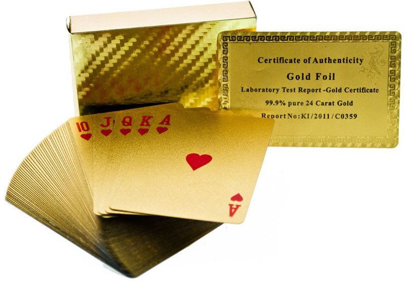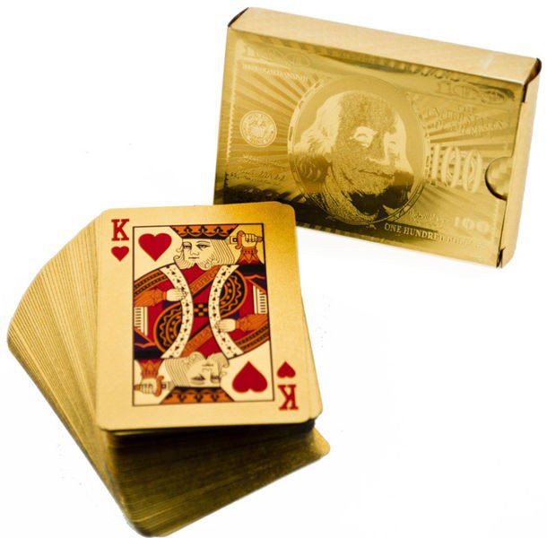 Milujete hraní karet a chtěli byste jedinečný a vyjímečný balíček karet jaký vám bude každý závidět? Máme pro vás tento speciální balíček 54 kusů karet pokrytých zlatou fólií. Vaše hra nabere nový rozměr, když si k ní sednete se zlatými kartami.